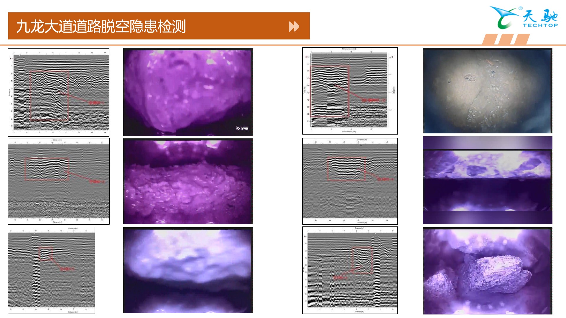 2020年12月,黄埔马拉松活动前夕,受相关权属部门委托,我司快速组织技术力量对九龙大道5.6公里的道路范围开展三维地质雷达检测,为道路交通安全做好保障。检测结果共发现6处空洞,6处疏松体。其中6处空洞集中分布在何棠下公交站前后不到1公里的道路范围内。