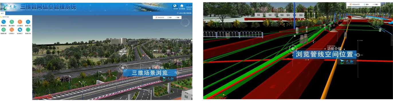 主要功能特点:三维漫游浏览、三维模型精细可视化、应急管理、空间统计、空间分析、三维度量、报表管理。