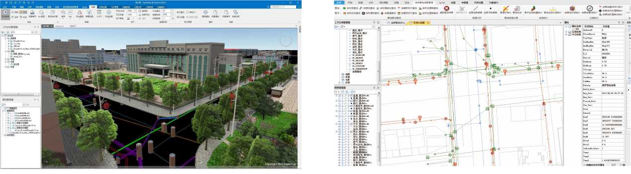 软件简介:利用SuperMap、ArcGIS等GIS平台进行二次开发。实现海量的管网数据管理、查询、统计分析、地图影像加载、二维投影图展示、三维模型图展示等功能。
